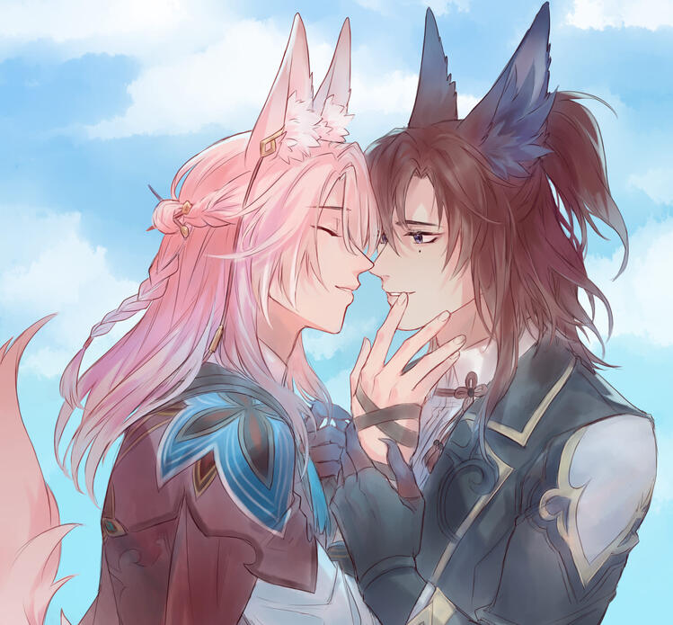 (Disclaimer: This contains spoilers of 2.5)Two older foxians who met during the time of war, as a doctor and Verdant Knight respectively.Having drifted apart after the effects of it, they met again on the Luofu, Jiaoqiu being Feixiao’s advisor, and Haoran being sent by her to the Realm-Keeping Commission for a special task.They nearly sacrificed themselves in the events of 2.5, which is where they realised their feelings for each other.